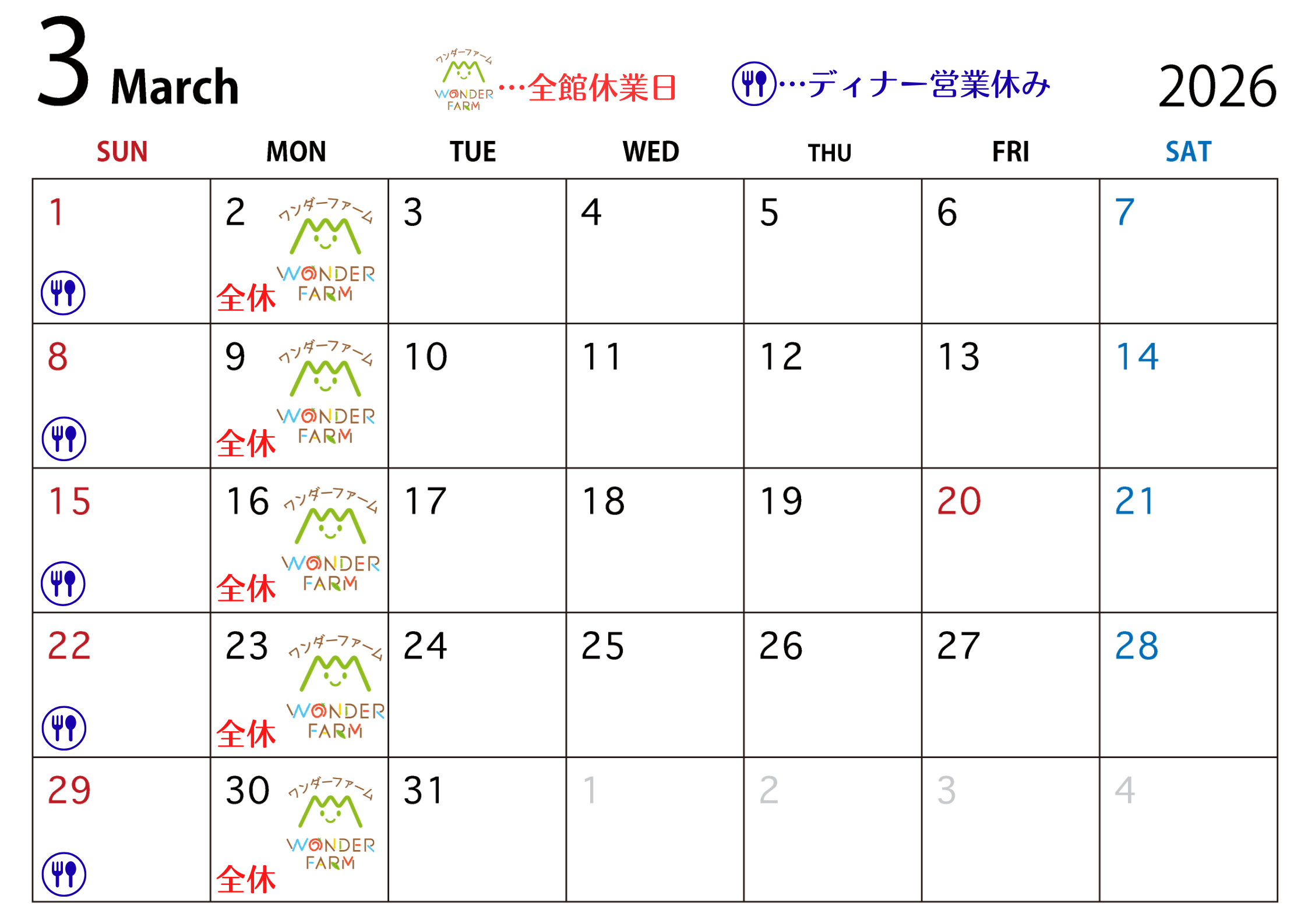 3月のスケジュールをご案内いたします。