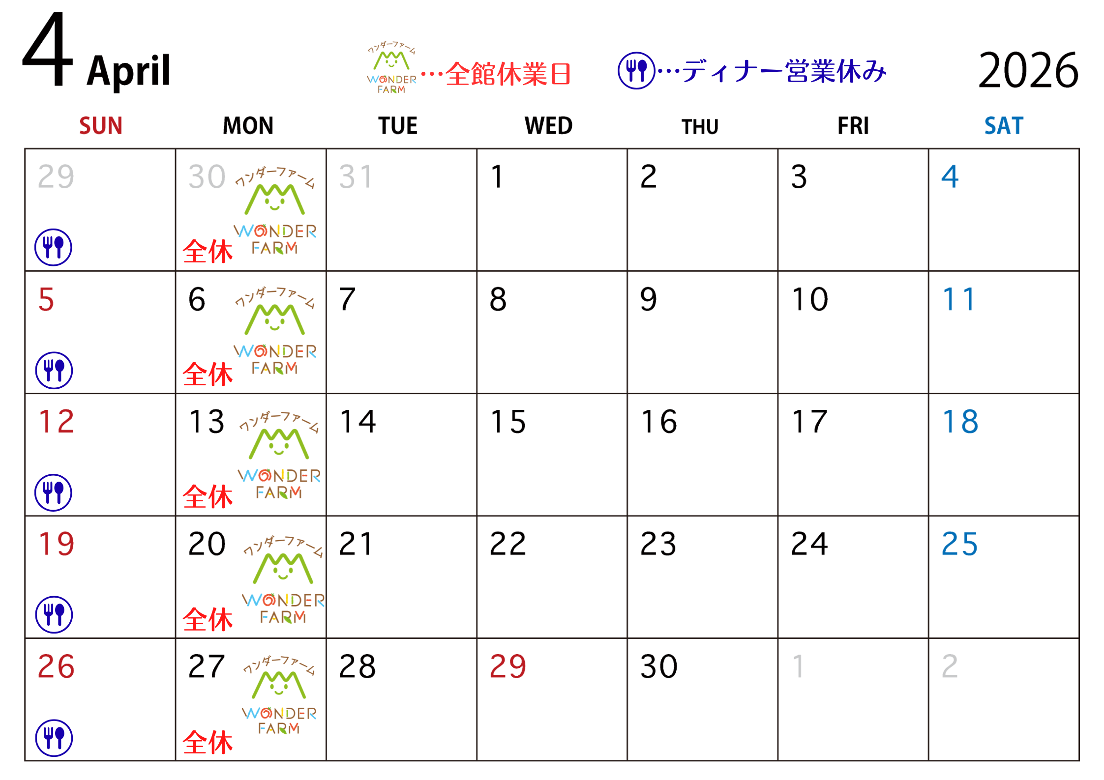 4月のスケジュールをご案内いたします。